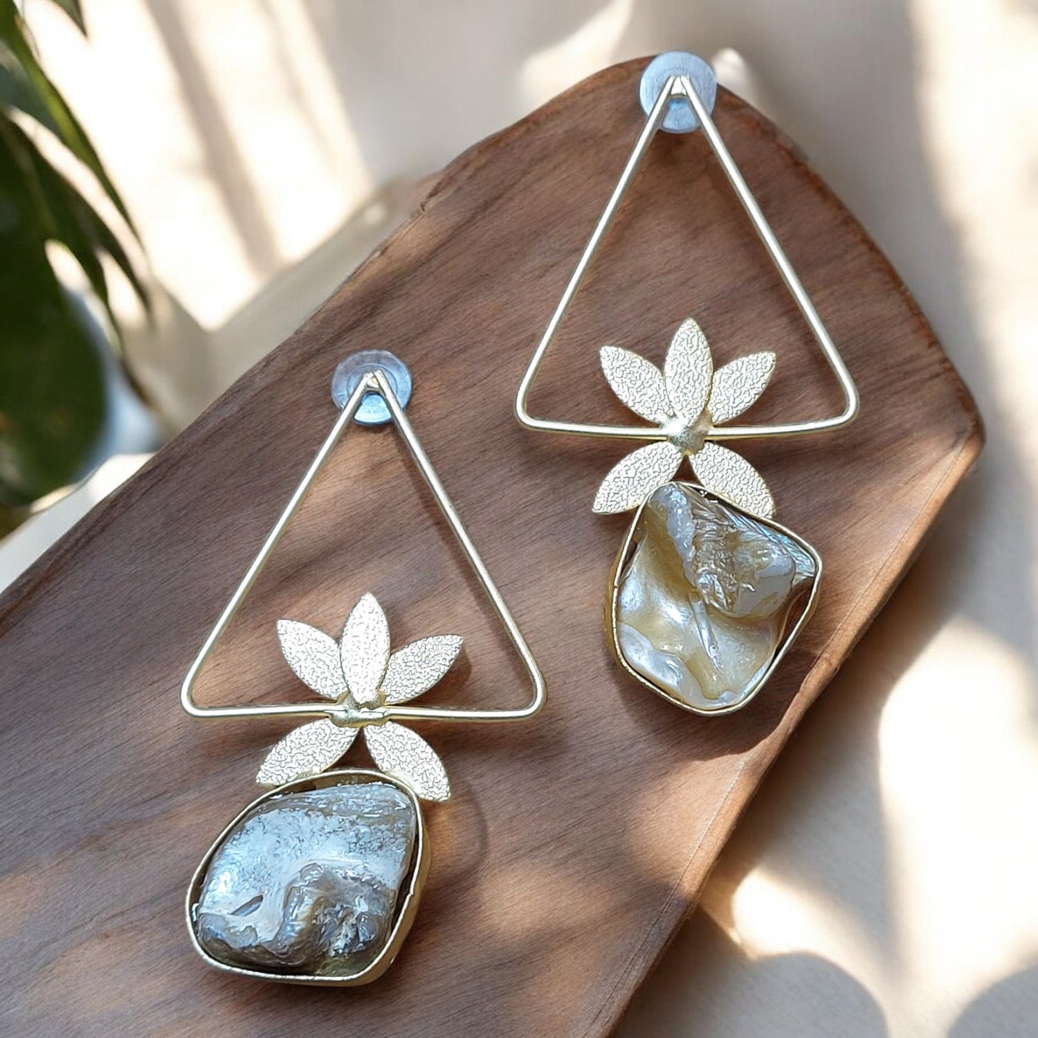 LOTUS TRIANGLE MOTHER OF PEARL EARRINGS