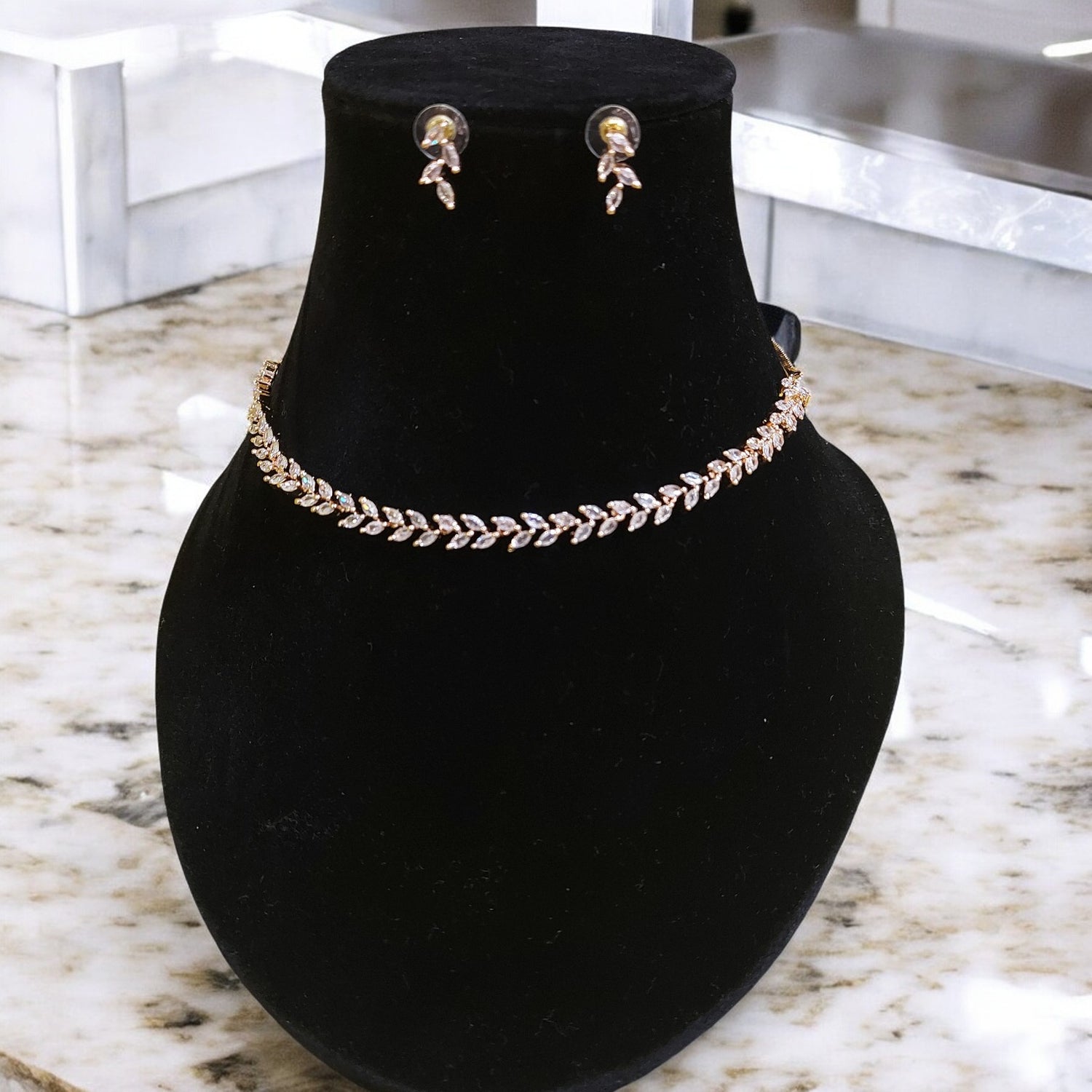 SLEEK ROSE GOLD AMERICAN DIAMOND NECKLACE SET