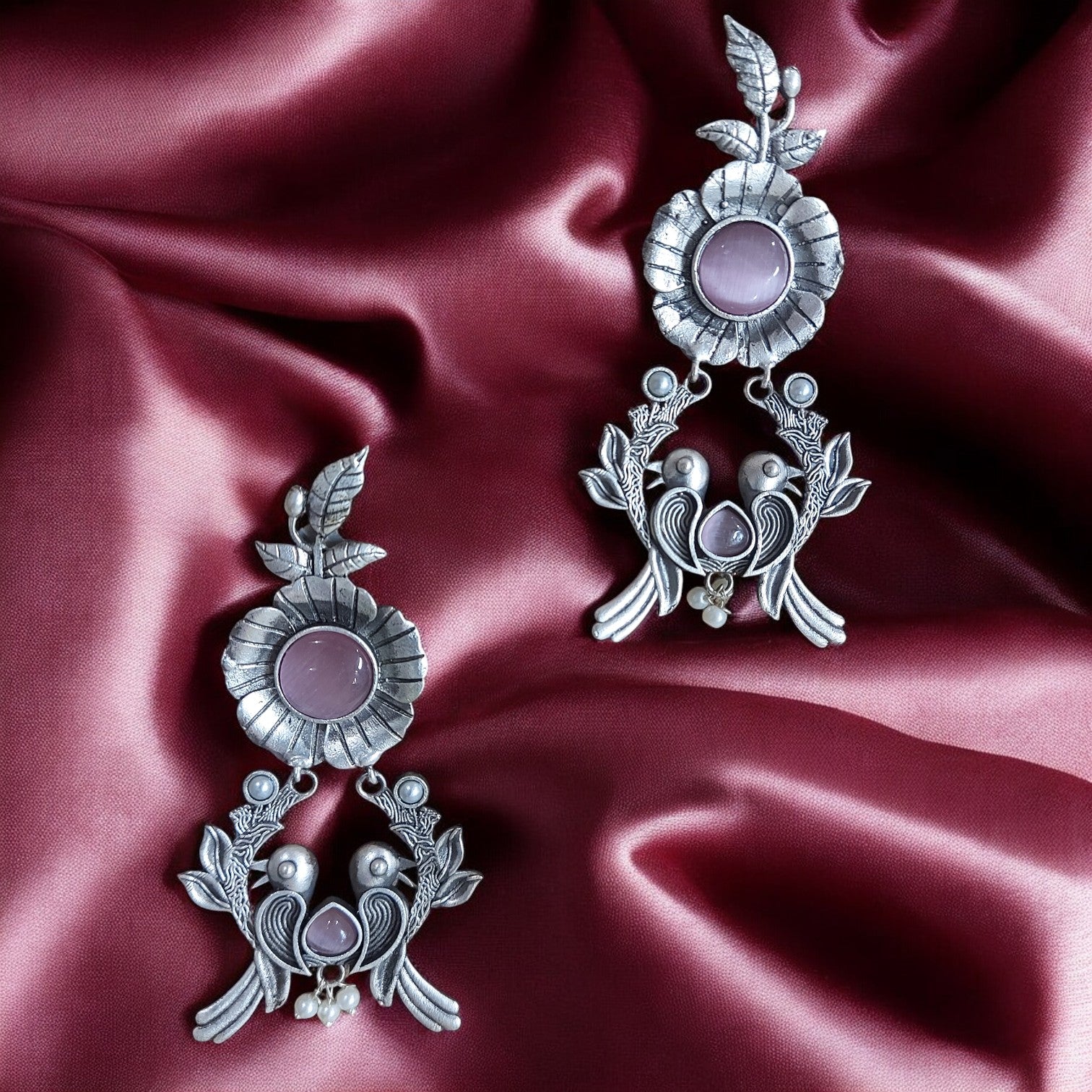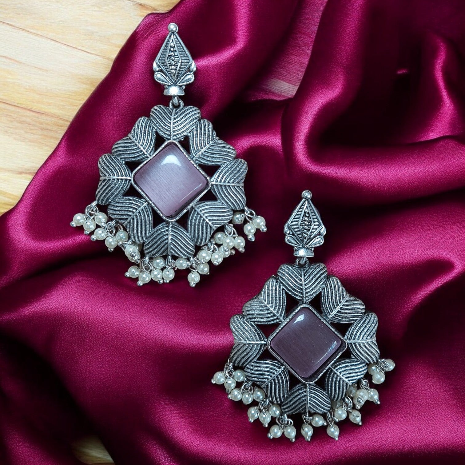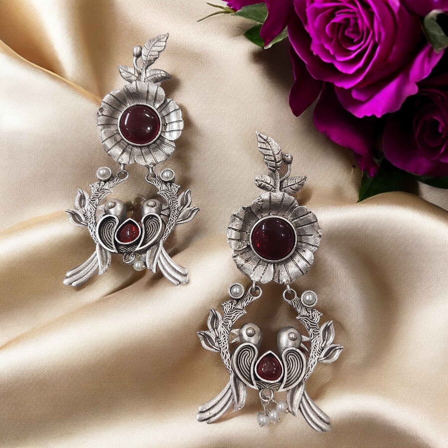 SILVER OXIDIZED FASHION RUBY DROP EARRINGS