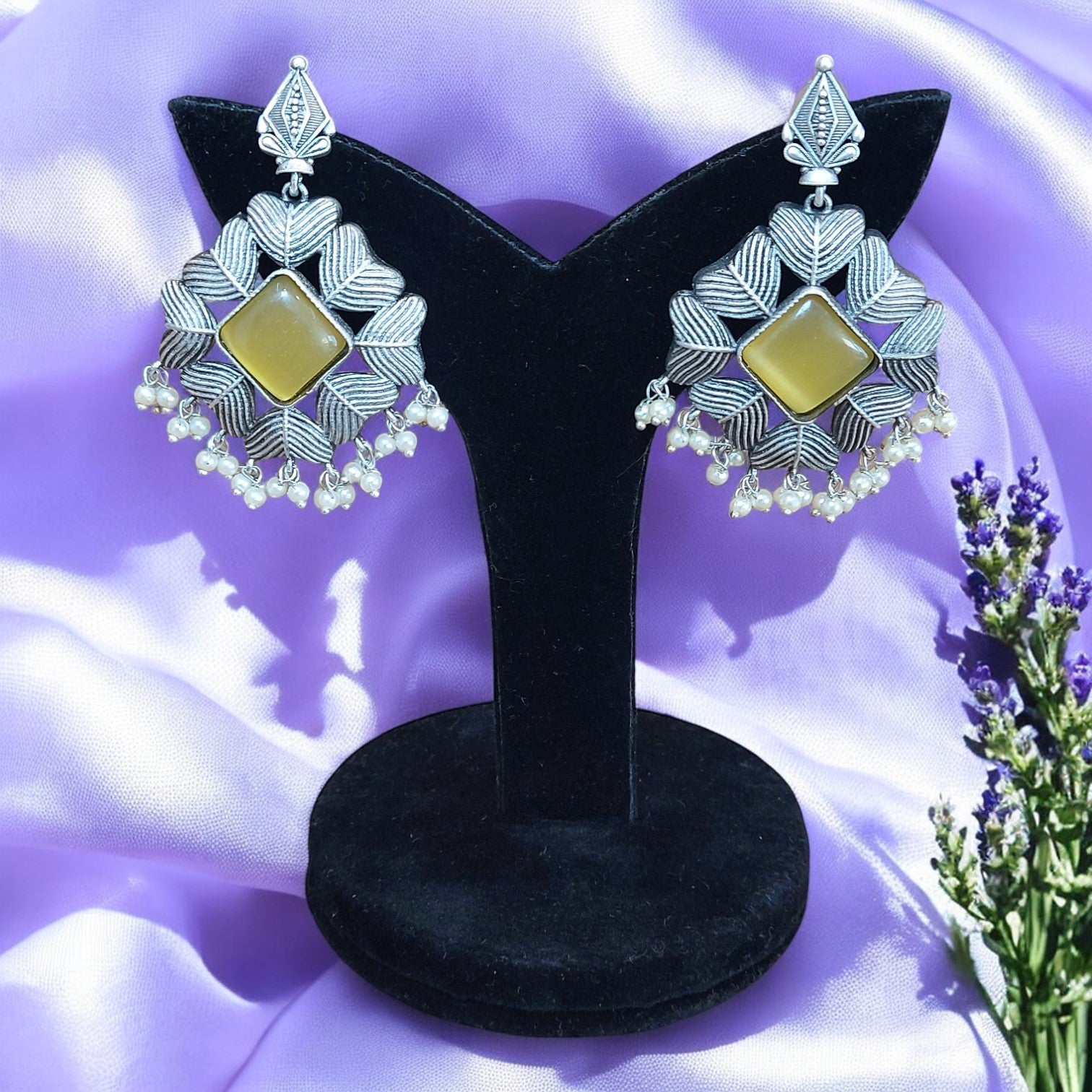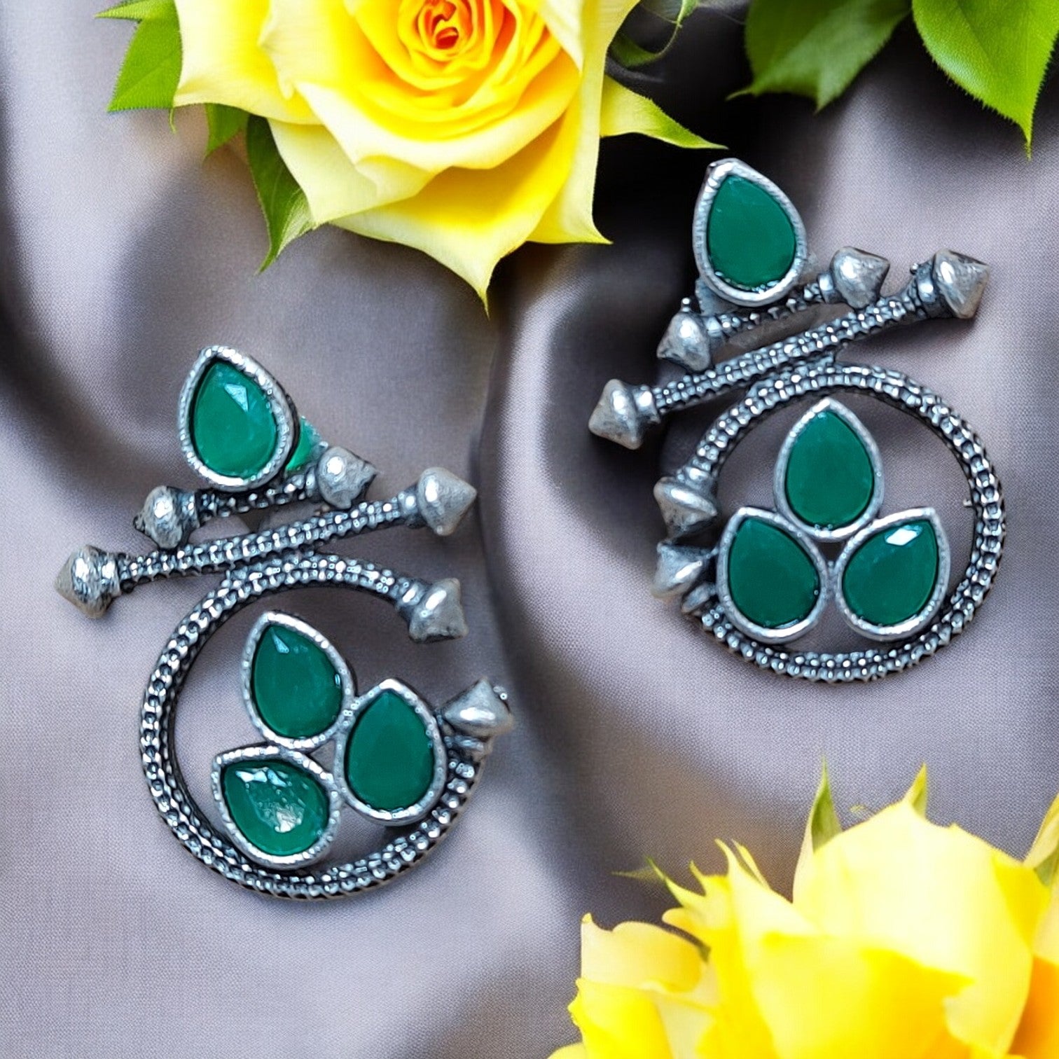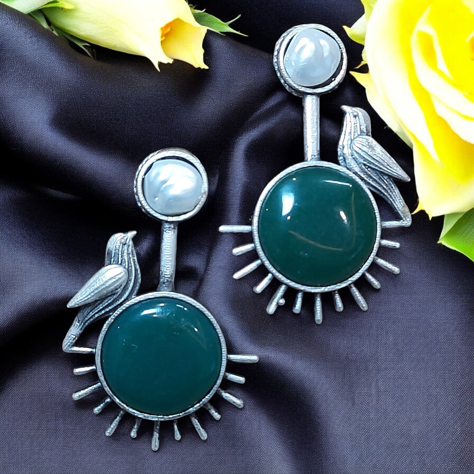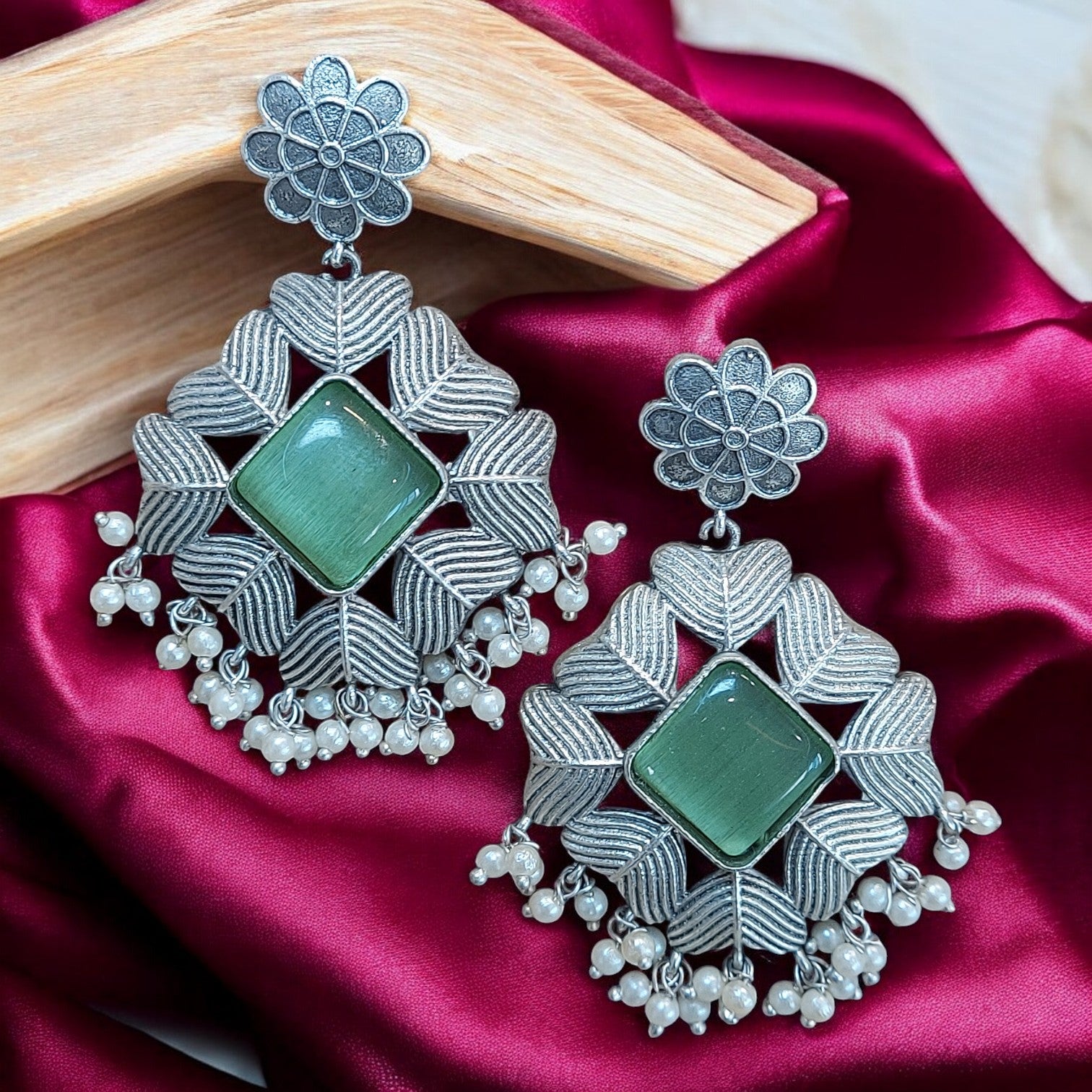 SILVER OXIDIZED FASHION GREEN DROP EARRINGS
