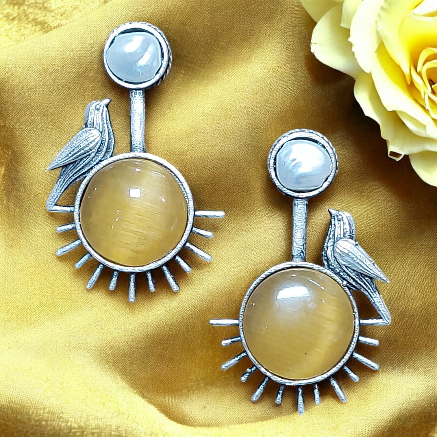SILVER ROBIN YELLOW MONALISA STONE PEARL EARRING