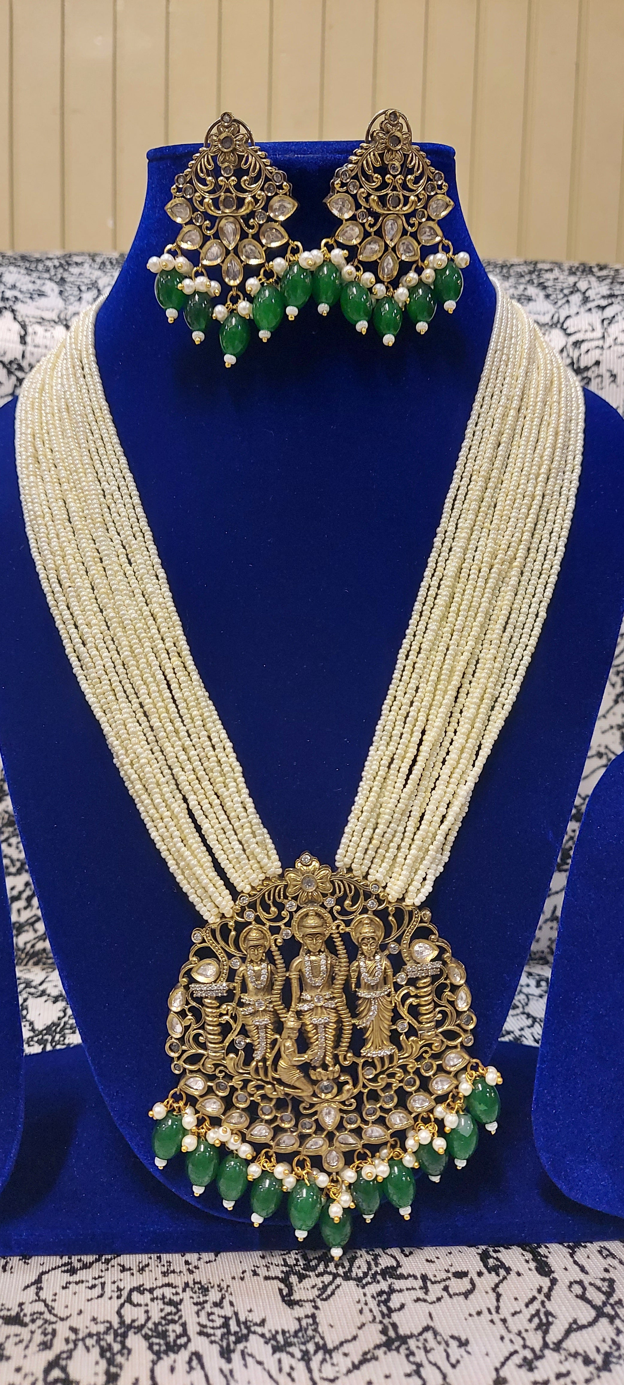 JYAVI VICTORIAN RAM DARBAR KUNDAN TEMPLE PEARL SET