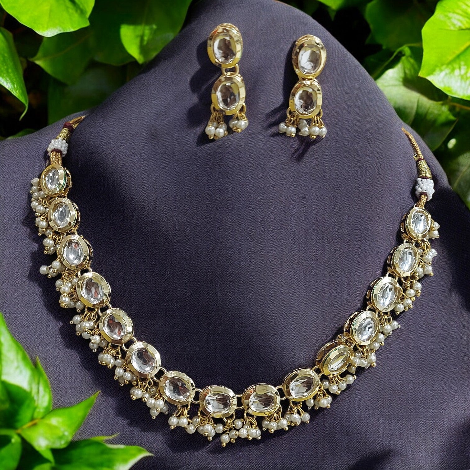 GOLD PLATED PEARL UNCUT KUNDAN CHOKER NECKLACE