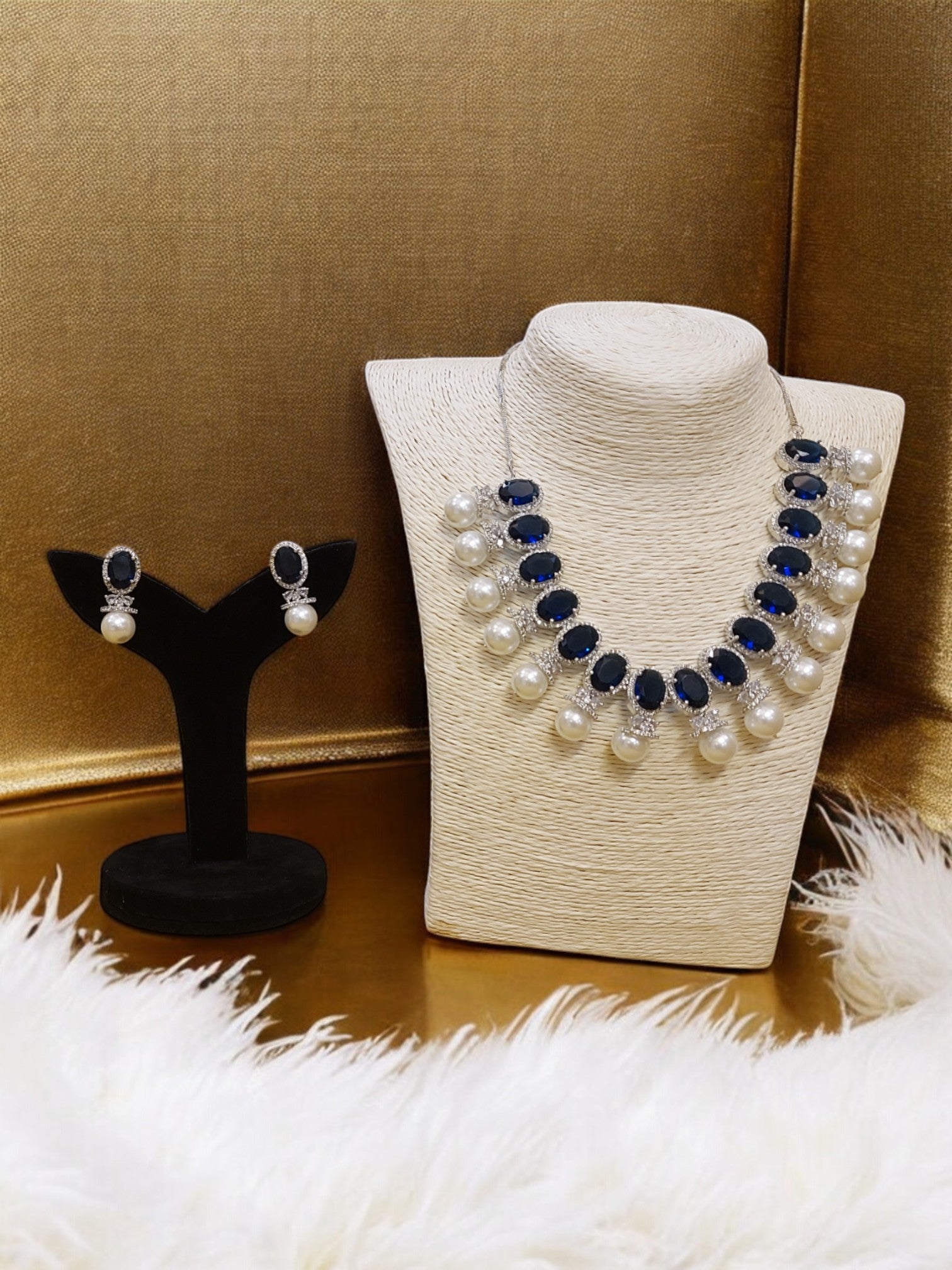 BLUE AMERICAN DIAMOND PEARL STUDDED NECKLACE