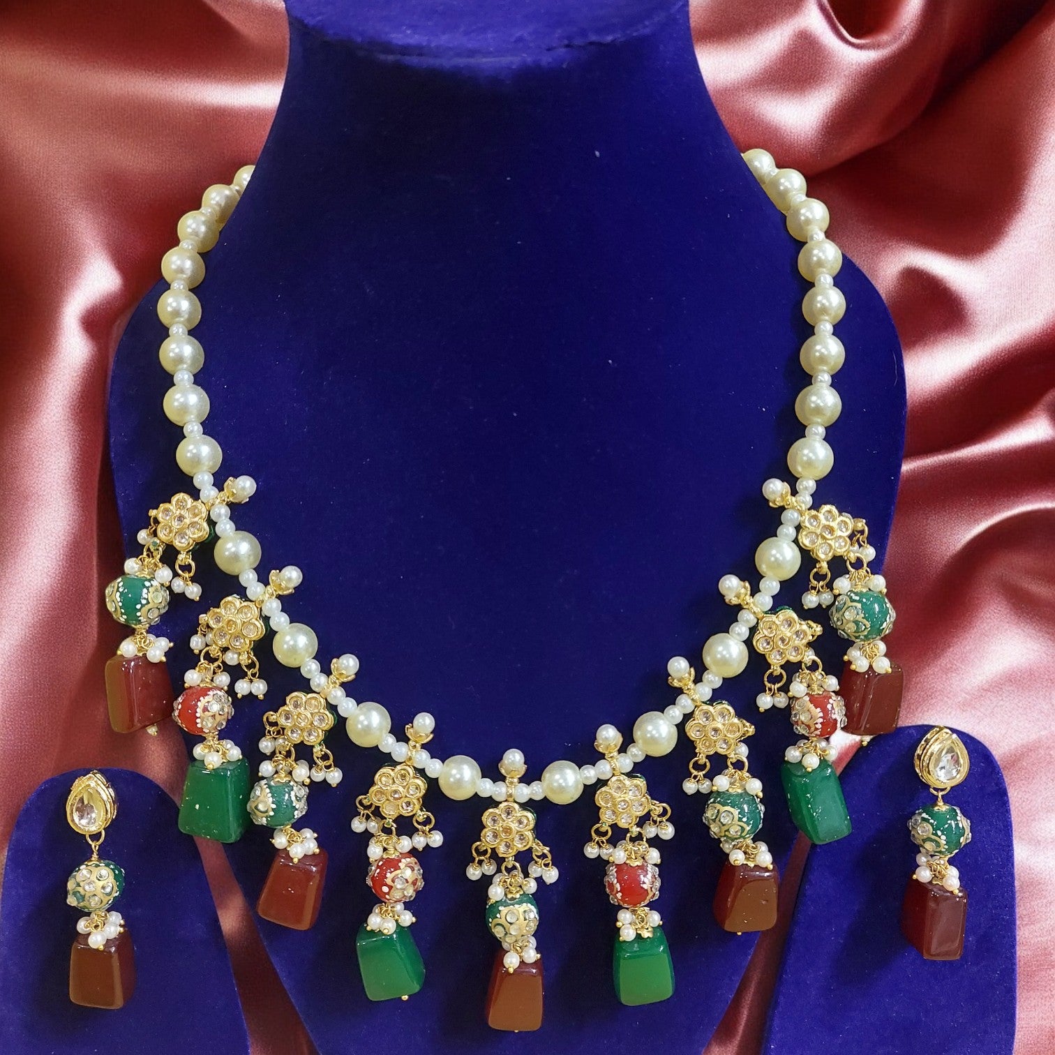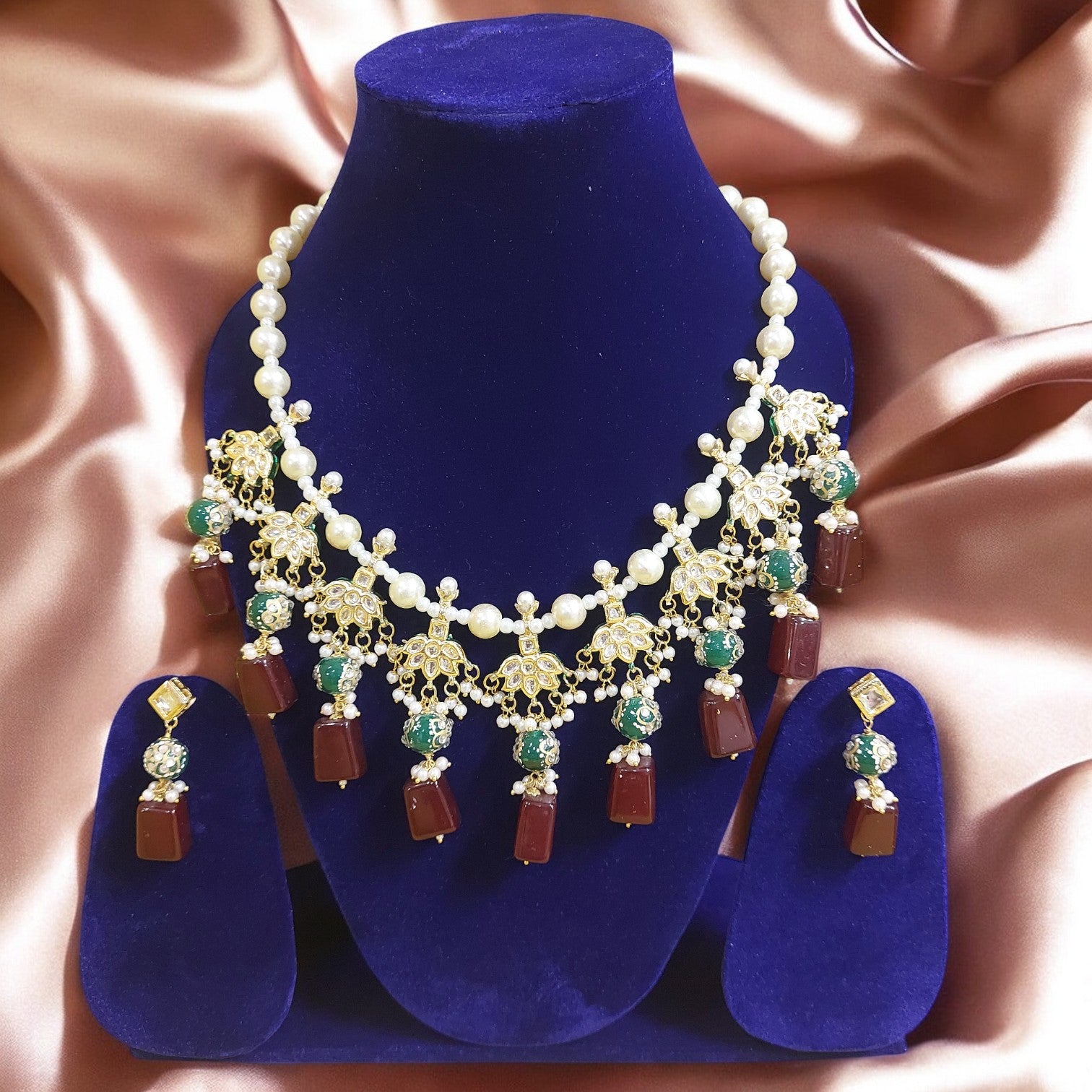 The Multicolor Padmavati Necklace is a stunning piece of jewelry that combines traditional Rajwadi design with a modern twist. Featuring...