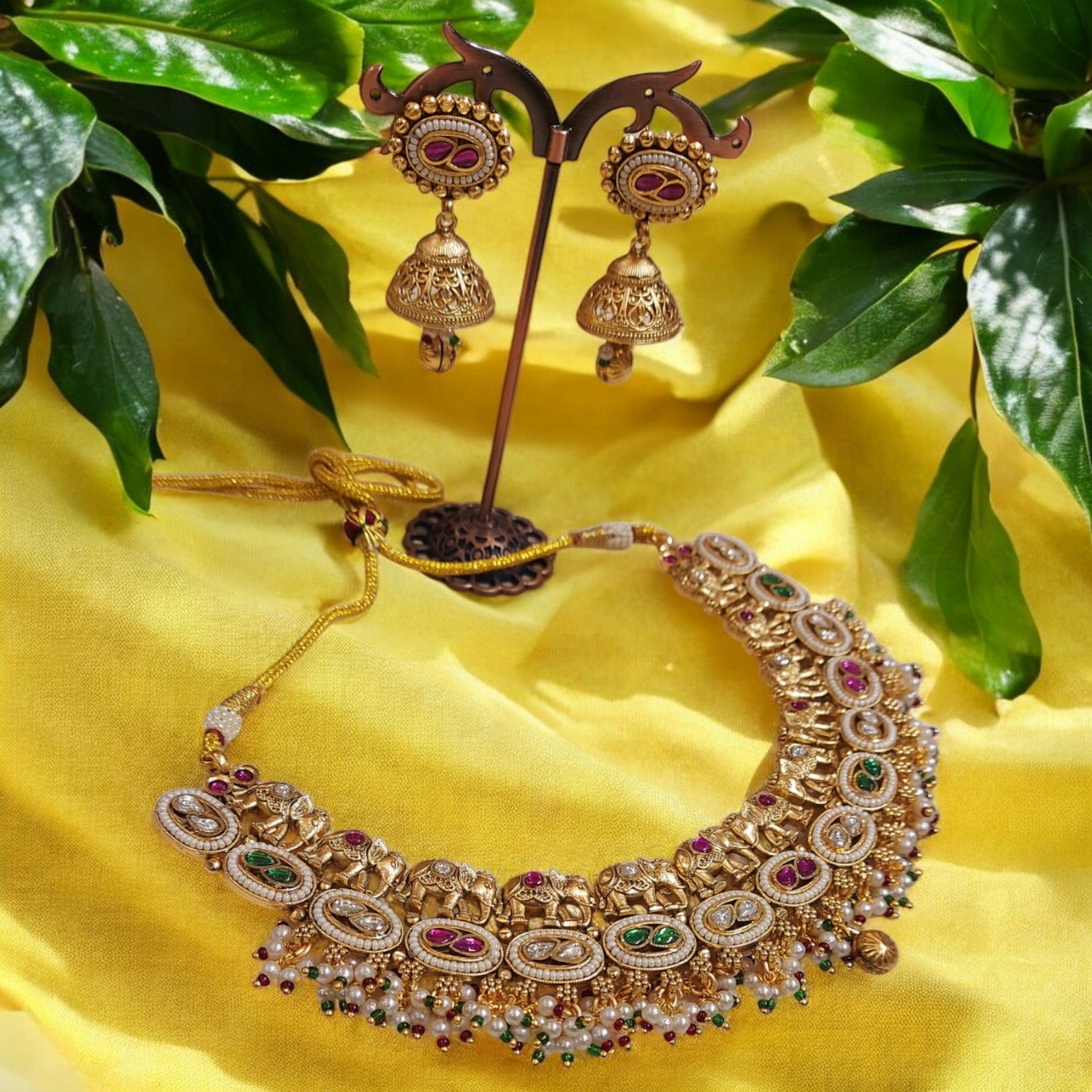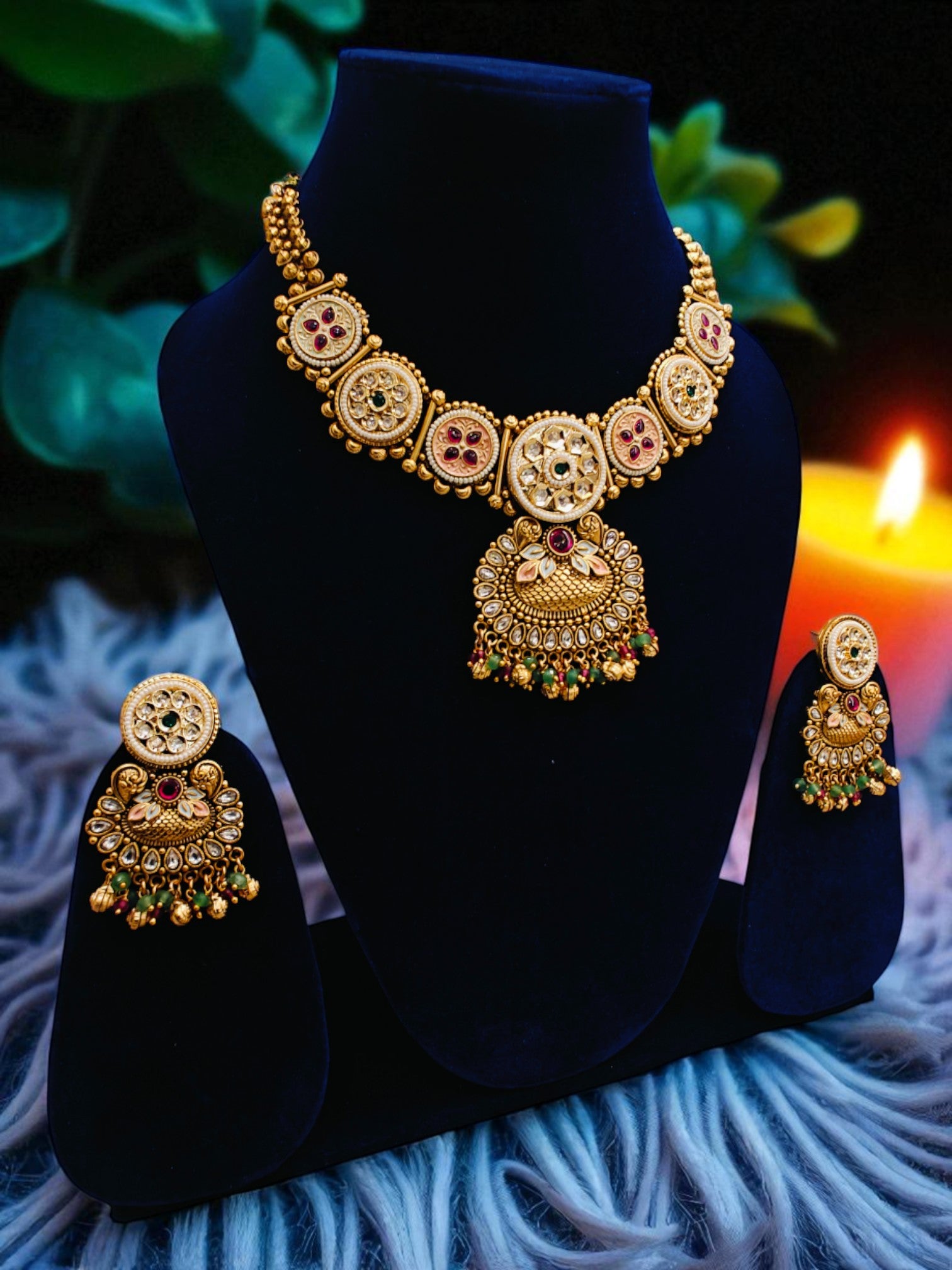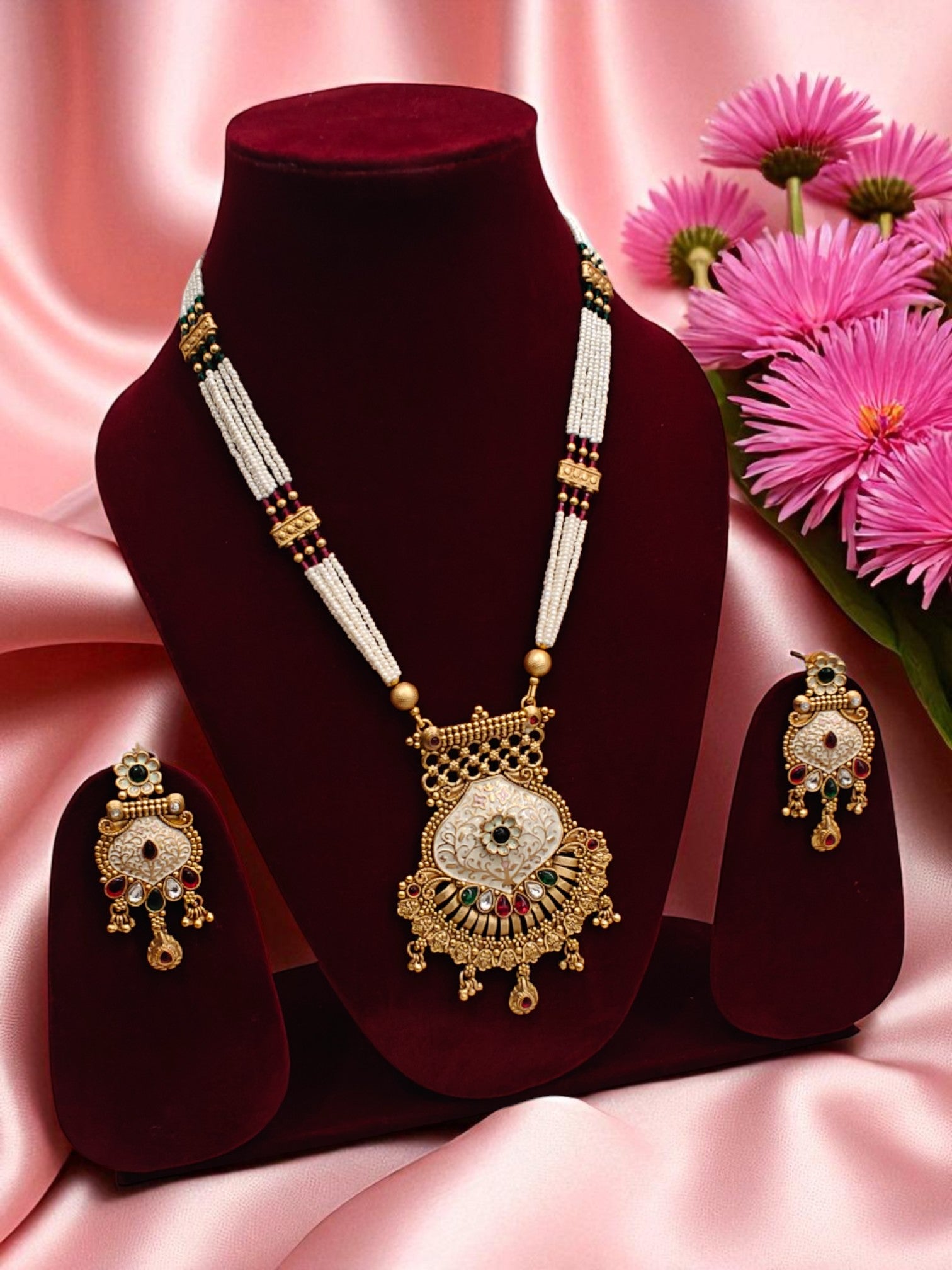 DIVA GOLD PLATED RAJWADI NECKLACE SET