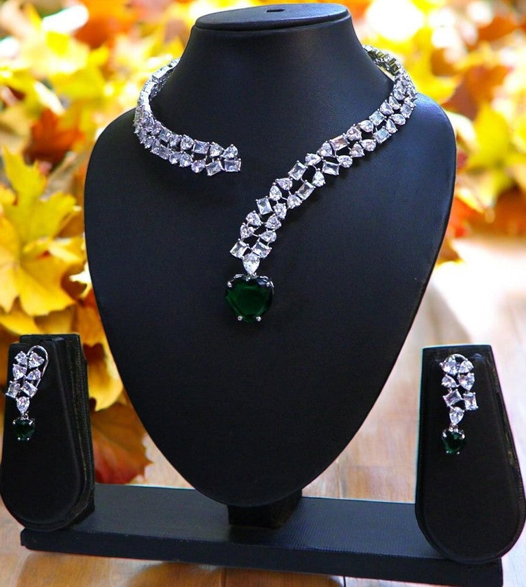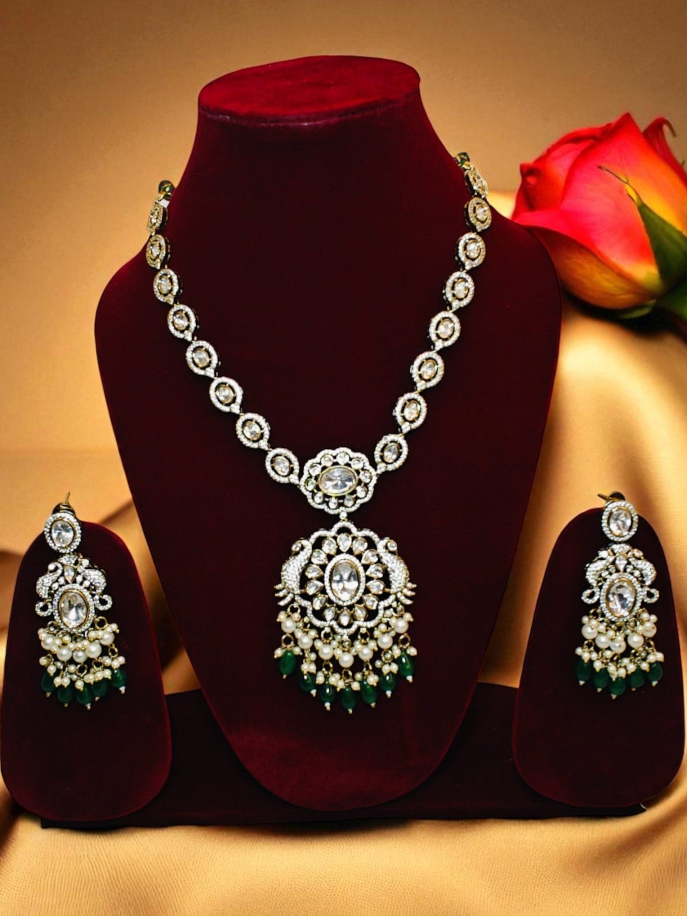 Add a touch of elegance to your wardrobe with our ROYAL MINT GREEN AMERICAN DIAMOND NECKLACE. Made with exquisite craftsmanship...