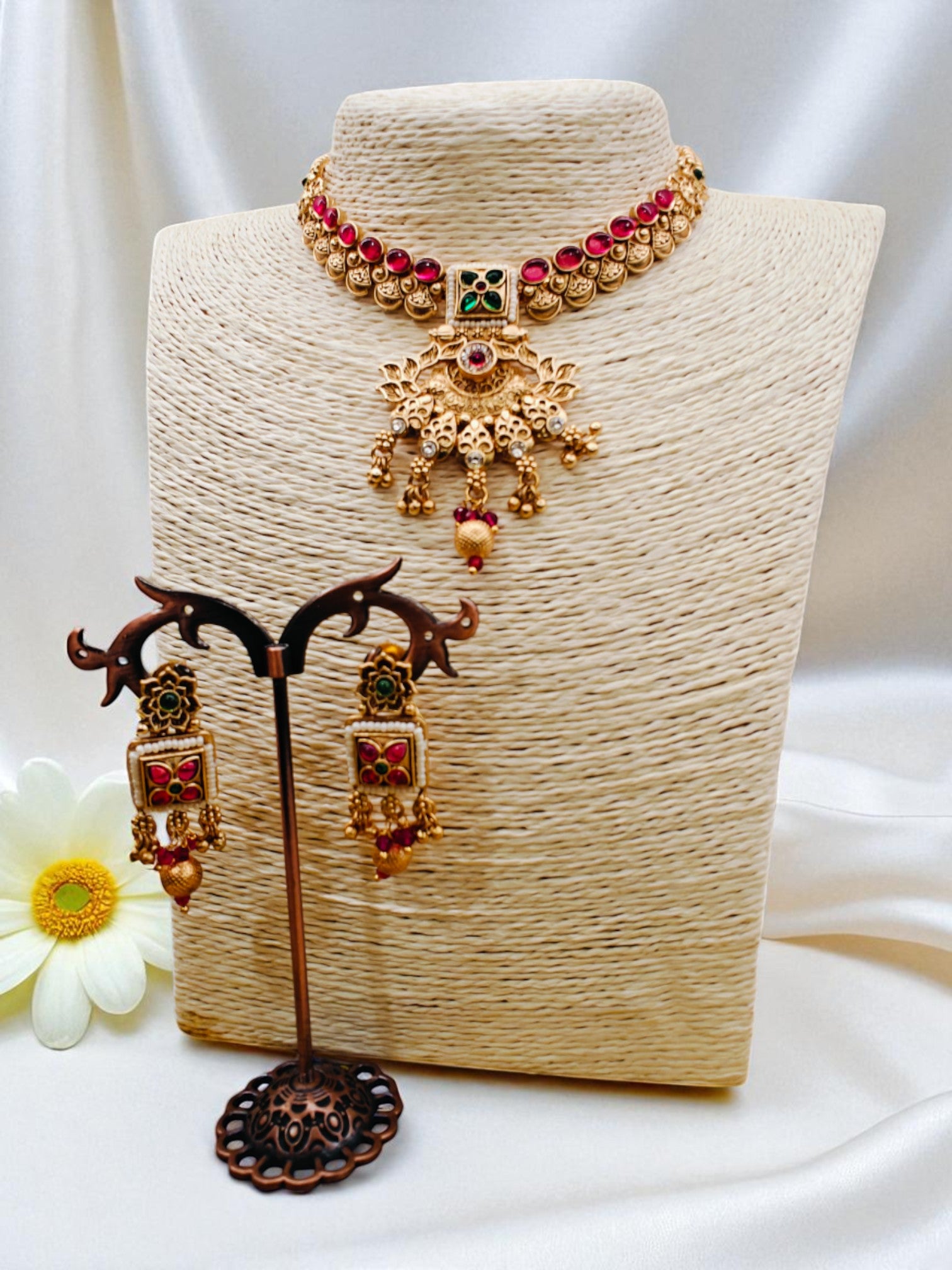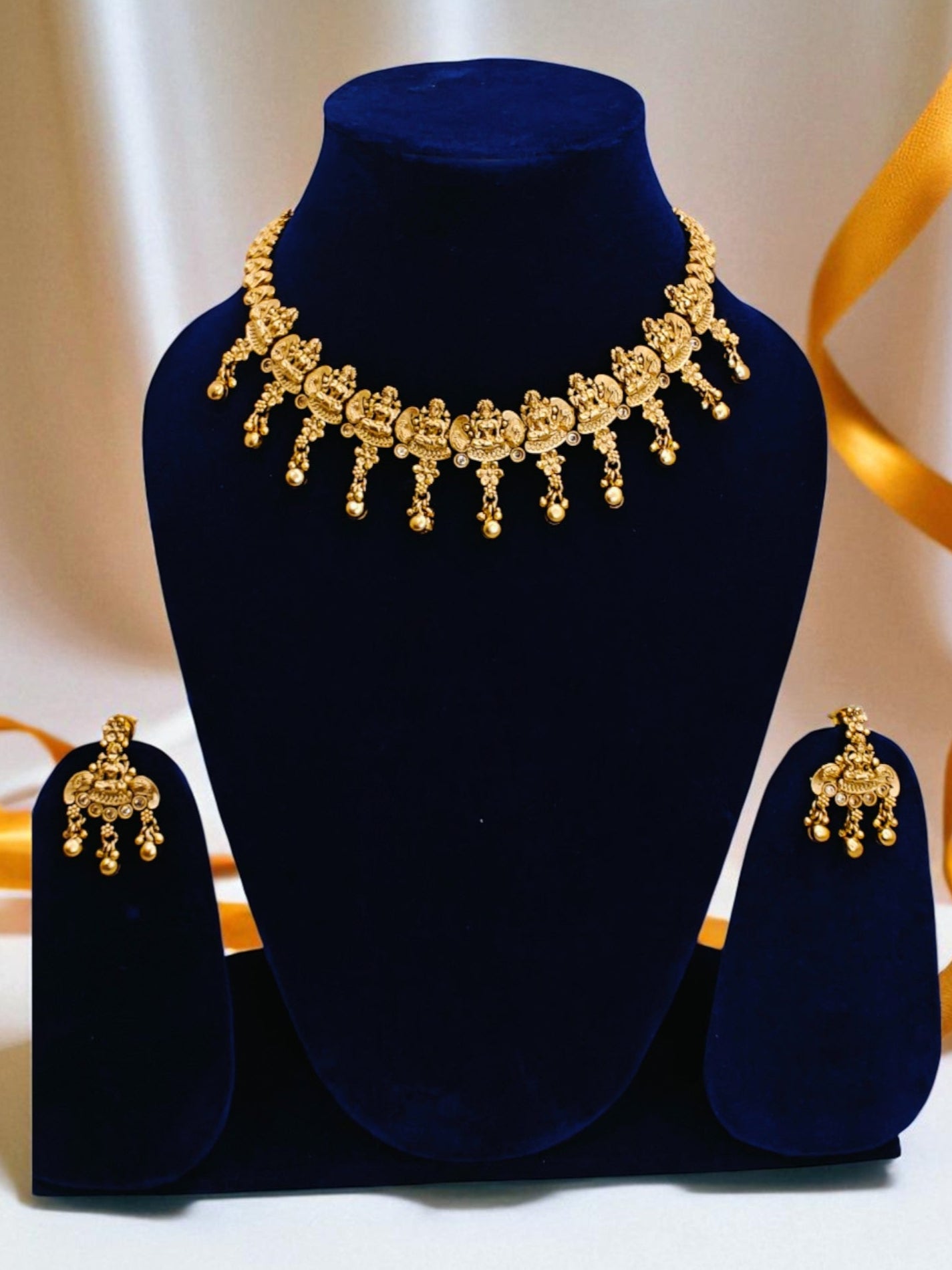 This traditional necklace features a gold plated design that exudes elegance and sophistication. Its intricate details showcase the expert craftsmanship,...