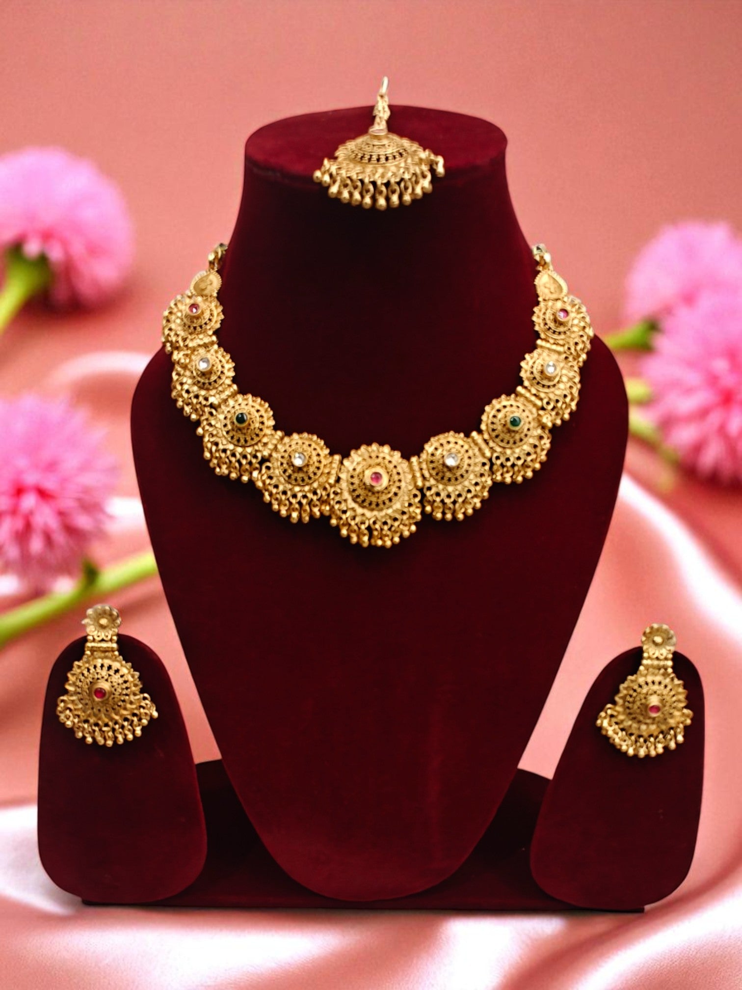 GOLD PLATED NECKLACE SET WITH MAANGTIKKA