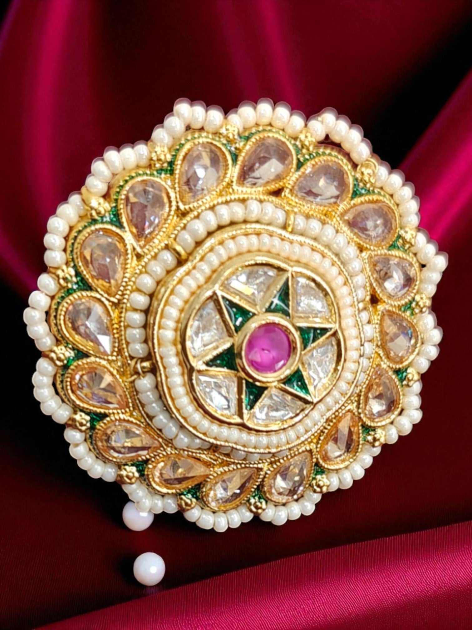 The Rajwadi Big Kundan Ring is a distinguished piece that exemplifies traditional Indian jewelry craftsmanship. Featuring large, expertly set Kundan...